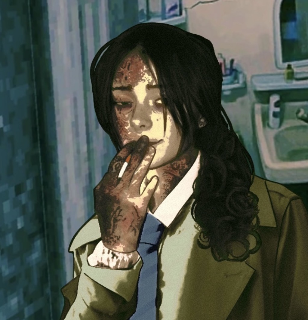 She finds herself content in her position as a reagent currently, she doesnโt exactly want to stay, but neither is she desperate to escape, sheโs stuck in a state of static. She canโt move on from her past, her addiction, her childhood, and she sees no future ahead of her to run towards. Sheโd rather lay on the cold concrete of her rooms floor in a daze until something urges her to stand.